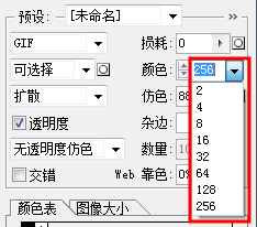 這是PS的輸出模式中提供的gif色彩選項(xiàng)。
