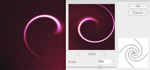 使用旋轉扭曲濾鏡會產生輻射發散狀的光紋。