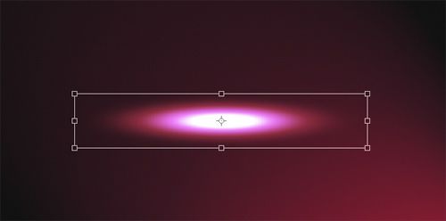 復制剛在制作的光效圖層(Ctrl+J),隱藏原始層。之后會用這層制作更多的光紋。現在,比例縮放(編輯》變換》縮放)(Ctrl+T)光效層使其扁平。這樣做可以控制光紋的粗細。
