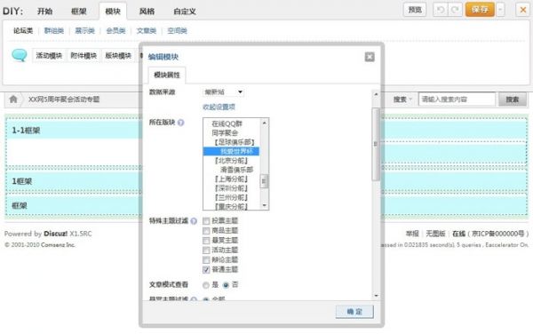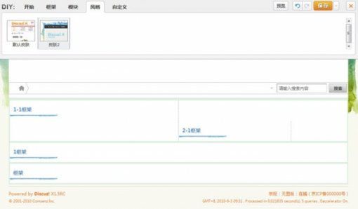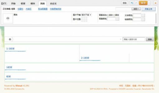 模板名:可以選擇不同的模板,標準版中內置目前只有一套;如果有新模板可以將模板文件上傳到 template/default/portal目錄下,文件名必須為portal_topic_*.htm,*為自定義文件名,如果要重新選擇模板,請確保新模板與原模板中可拖拽區域具有相同的ID,否則將會丟失分部或全部原DIY數據
