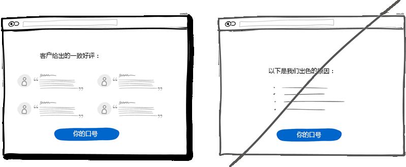 多次重復(fù)主旨口號(hào)這種方法適用于界面很長或者分頁的情況。首先你肯定不想滿屏刷出相同的信息,這樣會(huì)讓人生厭。但當(dāng)頁面足夠長的時(shí)候這些重復(fù)就顯示自然多了并且也不顯得擁擠。所在在頁面頂部放一個(gè)按鈕然后在頁面底部再適當(dāng)放個(gè)突出的按鈕的做法沒有什么不妥。這樣當(dāng)用戶到達(dá)頁面底部在思考接下來該做什么的時(shí)候,你提供的按鈕就可以獲得一個(gè)潛在的合同或者即使用戶不需要你的服務(wù)這個(gè)按鈕也可以起到過濾的作用。