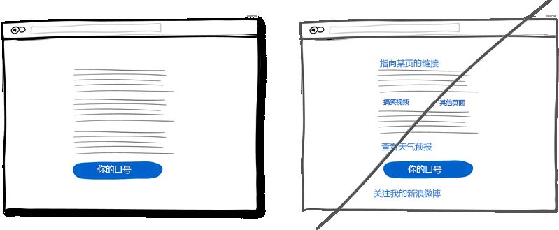 為了滿足各式用戶的需求,在頁面上放些鏈接鏈到這里鏈到那里是常見的做法。如果你的主要目的是想讓用戶點(diǎn)擊頁面最后那個(gè)下載按扭什么的話,就需要三思了。因?yàn)橛脩艨赡茳c(diǎn)擊了其他鏈接離開頁面了。所以你需要注意頁面的鏈接數(shù)量,最好將用于導(dǎo)航與用于操作的鏈接用樣式區(qū)分開。盡量移除頁面不需要的鏈接會(huì)讓用戶點(diǎn)擊到你的功能按鈕。